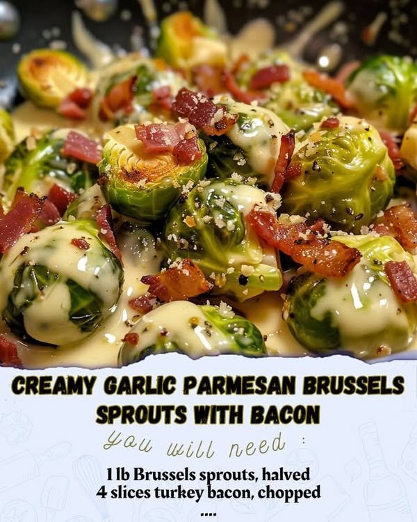 🧀 Creamy Garlic Parmesan Brussels Sprouts with Turkey Bacon