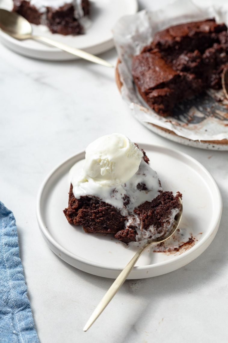 - Transfer the gooey brownies to bowls and serve warm with vanilla ice cream.