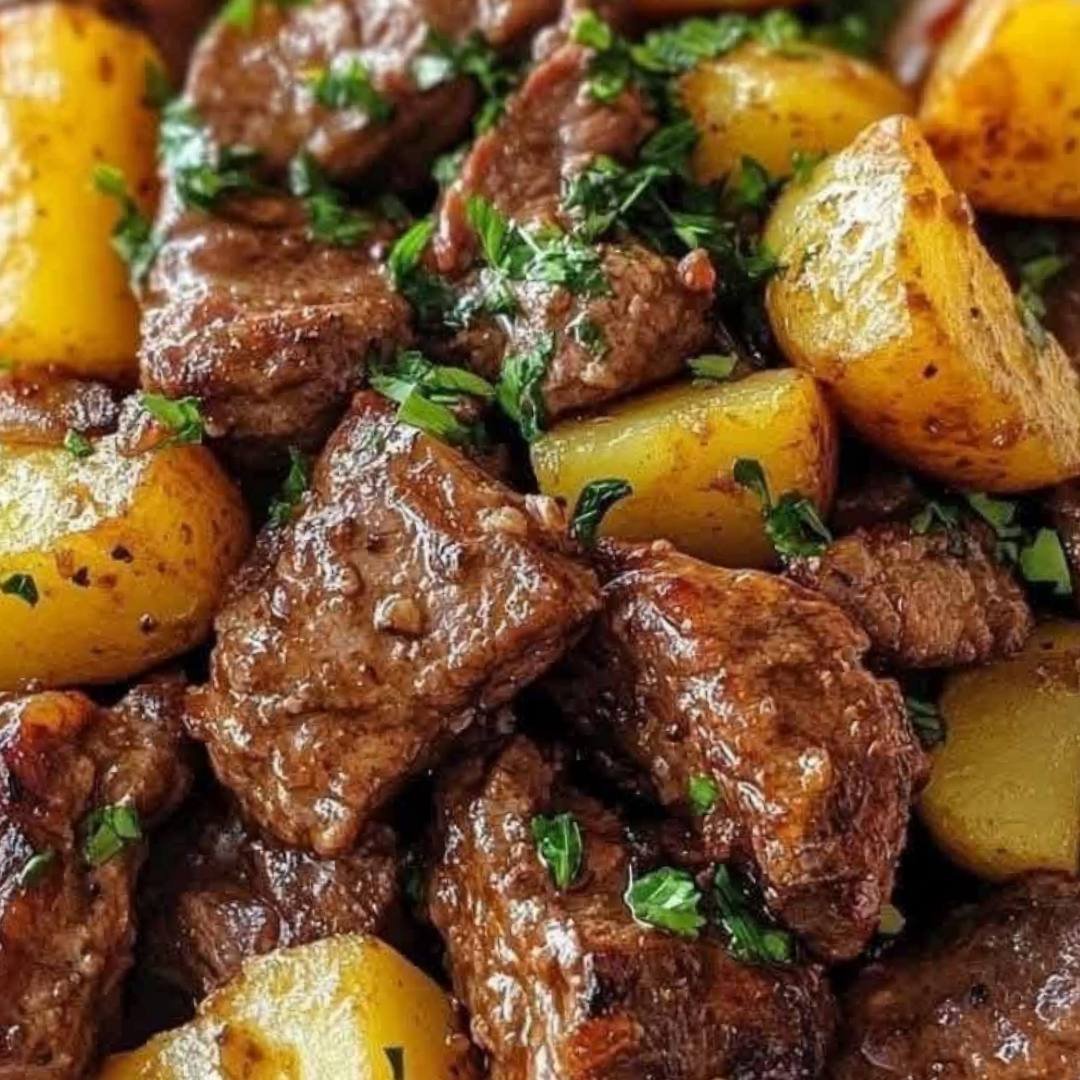 Air Fryer Garlic Butter Steak Bites and Potatoes