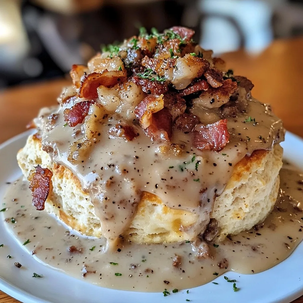 Serve immediately while biscuits and gravy are hot for optimal texture and flavor.