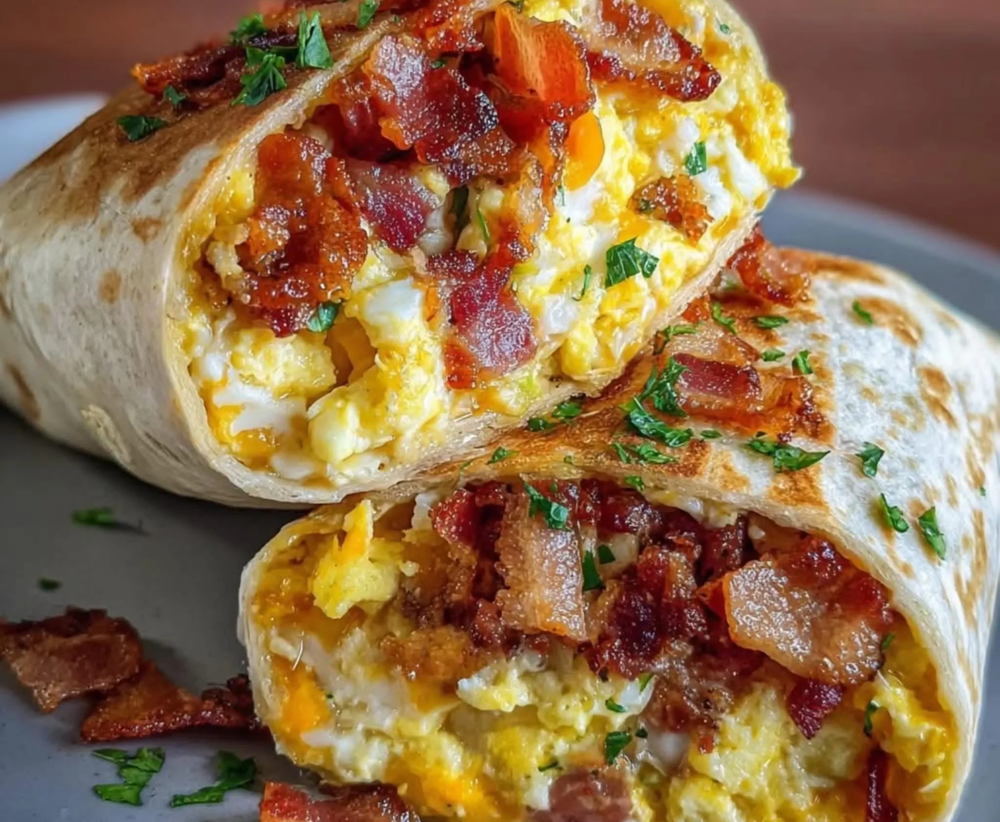 Quick Description: Crispy bacon, fluffy eggs, and melty cheddar cheese wrapped in a warm tortilla — this breakfast burrito is a fast, satisfying way to start your day!