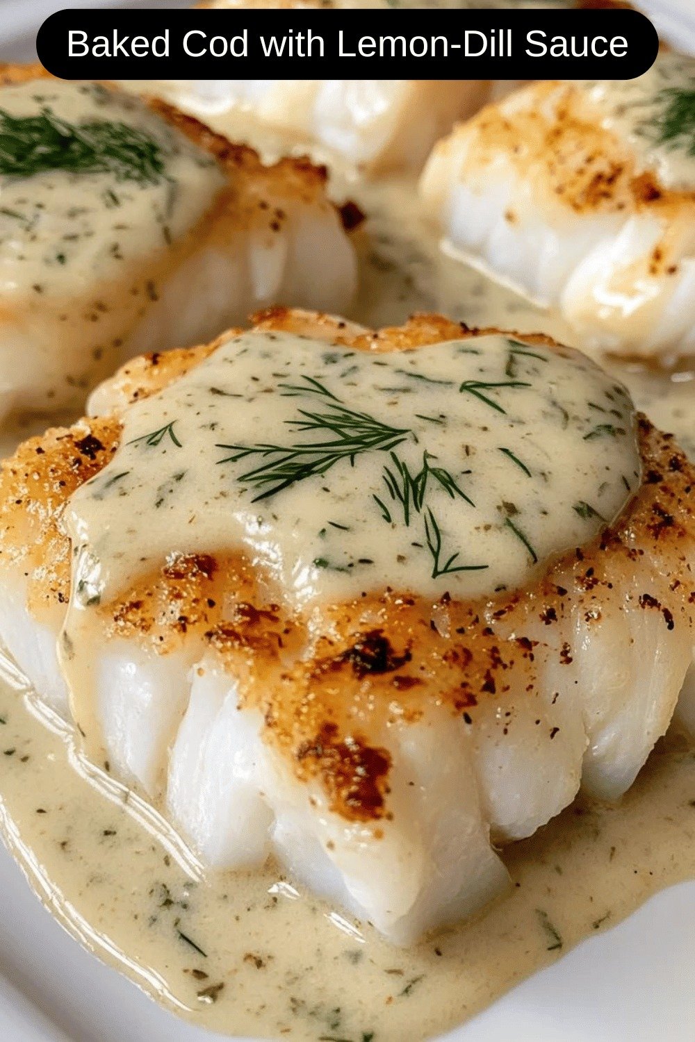 Spoon the lemon-dill sauce over the baked cod fillets.