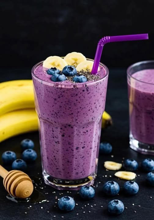 1. Add the blueberries, banana, almond milk, chia seeds, and honey to a blender.
