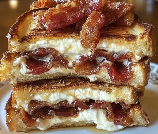 Preheat the oven to 375°F. Line a baking sheet with foil and place a wire rack on top. Lay the bacon slices on the rack. In a small bowl, mix together the brown sugar and cayenne pepper. Sprinkle the mixture over the bacon slices. Bake in the preheated oven for 15-20 minutes, or until the bacon is crispy and caramelized. Remove from the oven and let cool. In a medium bowl, mix together the cream cheese, powdered sugar, and vanilla extract until smooth. Spread a generous amount of the cream cheese mixture onto half of the French bread slices. Top each cream cheese-covered slice with a slice of candied bacon and then another slice of bread to form a sandwich. In a shallow dish, whisk together the eggs, milk, cinnamon, nutmeg, and salt. Dip each sandwich into the egg mixture, making sure to coat both sides. In a large skillet, melt the butter over medium heat. Cook the stuffed French toast sandwiches for 3-4 minutes per side, or until golden brown and cooked through. Serve the stuffed French toast warm with maple syrup drizzled on top. Enjoy the sweet and savory flavor explosion of this Candied Bacon Chaos Stuffed French Toast Cream Cheese Carnival!