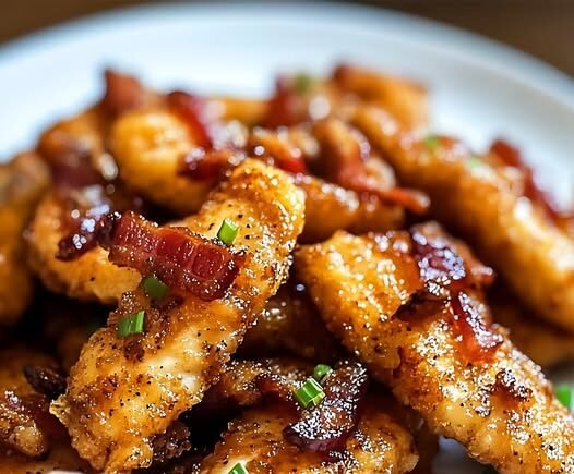 Coat the chicken tenders with the brown sugar glaze and sprinkle with cooked bacon bits.