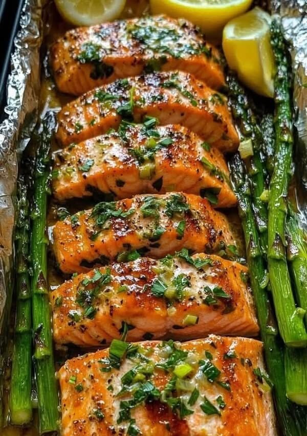 🐟 Baked Salmon in Foil with Asparagus A Quick, Healthy, and Flavor-Packed One-Pan Meal 🧂 Ingredients (Serves 2–4): 2 salmon fillets (6 oz each, skin-on or skinless) 1 bunch of …