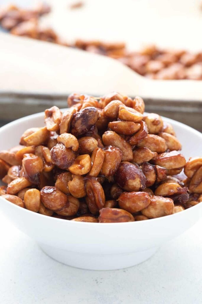 Course: SnackCuisine: AmericanKeyword: toffee peanuts Prep Time: 5minutes minutesCook Time: 20minutes minutesTotal Time: 25minutes minutes Servings: 12 servings Calories: 170kcal Ingredients 2 cups salted peanuts 2 tablespoon butter melted ¼ …