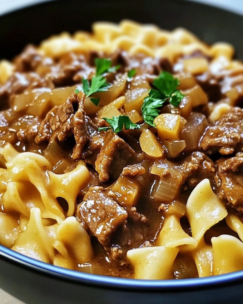 Ingredients:– Egg noodles– Beef (sliced thin)– Beef broth– Olive oil– Onions (thinly sliced)– Garlic (minced)– Fresh thyme– Salt– Pepper– Swiss cheese (shredded)Instructions:1. Start by heating olive oil in a large …