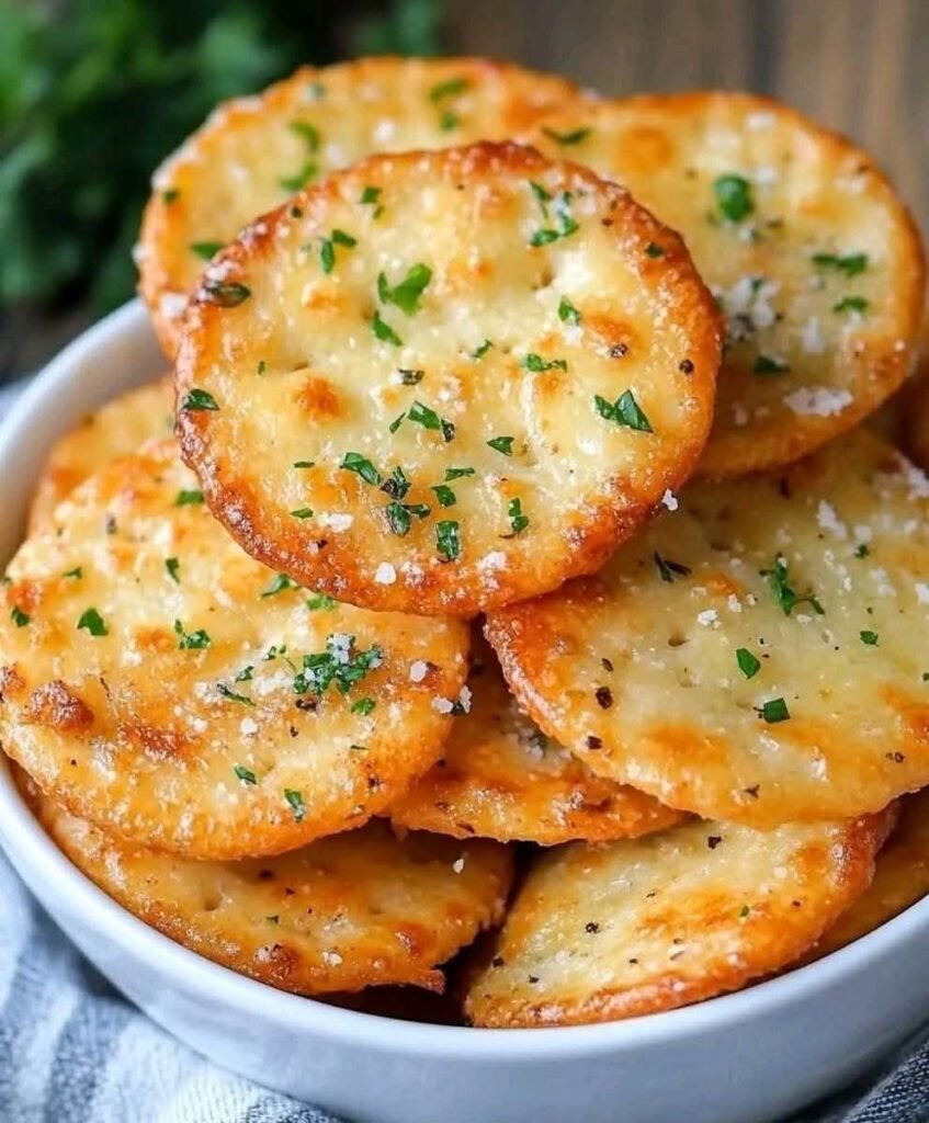 Ingredients:1 box Ritz crackers1/2 cup butter, melted1 teaspoon garlic powder1/2 teaspoon dried parsley1/4 teaspoon salt1/4 cup grated Parmesan cheeseDirections:Preheat your oven to 300°F (150°C).In a small bowl, mix together the …