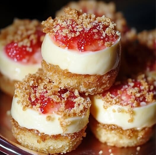 Author: Sozan Prep Time: 20 minutes Cook Time: 25 minutes Total Time: 45 minutes Yield: 24 mini cheesecakes 1x Category: Dessert Method: Baking Cuisine: American Diet: Vegetarian Description These Mini Strawberry Crunch Cheesecake Bites are rich, creamy, and topped with …