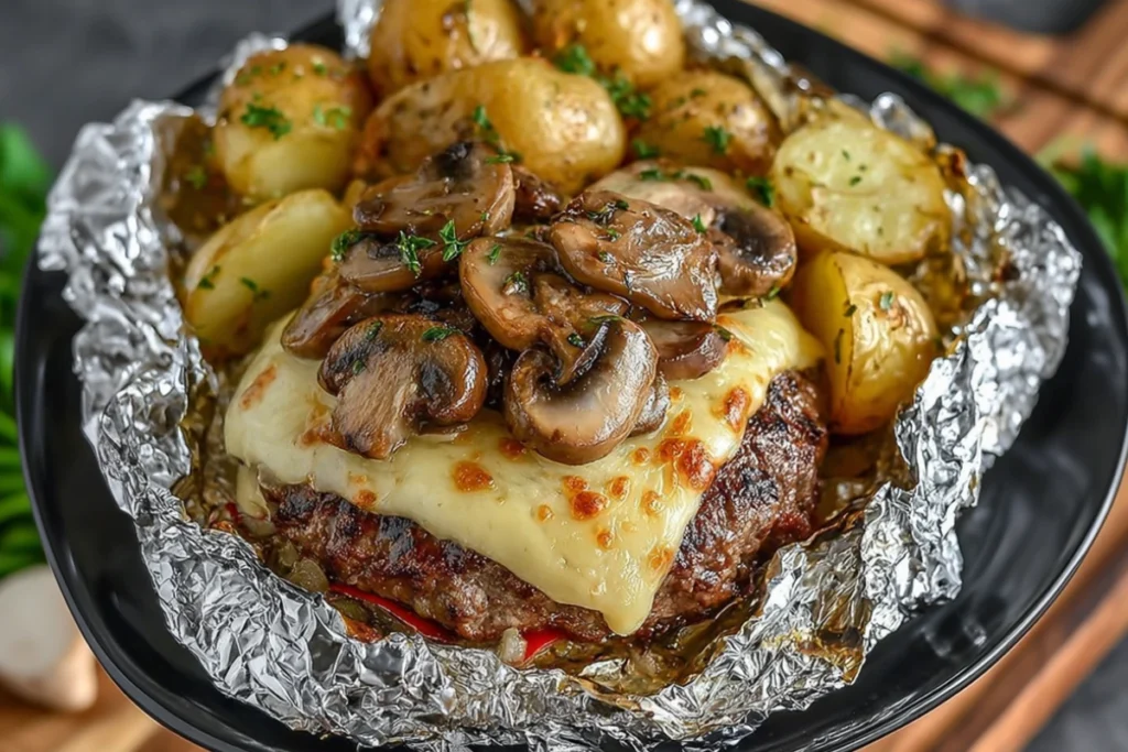 Juicy mushroom and Swiss burgers with garlic herb potatoes, all cooked in foil packets—perfect for grilling or baking! Ingredients 1 lb ground beef, 1 tsp Worcestershire sauce, 1 tsp garlic powder, …