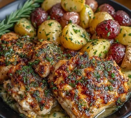 One-Pan Cowboy Garlic Chicken & Potatoes with Buttery Herb Sauce Skillet-Seared Cowboy Chicken Thighs with Garlic Potatoes and Herbed Butter Sauce Ingredients: 6 boneless, skinless chicken thighs 1.5 lbs baby …