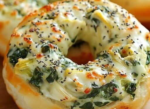 Place bagels cut side up on baking sheet and spread each with spinach-and-artichoke mixture. Top with remaining mozzarella. Bake until bagels are warmed through and cheese is melty, 10 to 12 minutes. Broil if desired.