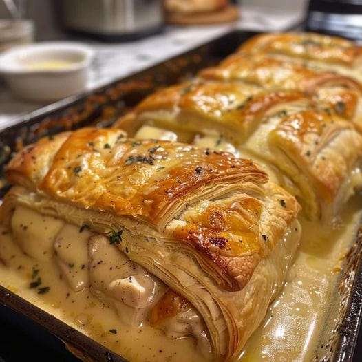 Chicken Wellington is the cozier, more weeknight-friendly cousin of Beef Wellington. Instead of beef tenderloin, we use tender chicken breasts, wrap them in savory fillings, and seal everything inside buttery puff pastry. The result is crisp, flaky layers on the outside and juicy, creamy chicken on the inside — exactly like what you’re seeing in the photo.