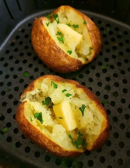 If you had told me a few years ago that the best baked potato of my life would start in the microwave, I probably would’ve laughed and gone back to waiting 75 minutes for my oven to preheat. But here we are — living in the future — where the combination of microwave speed and air fryer crispiness produces a baked potato that tastes like it required effort, patience, and planning… even though it absolutely did not.