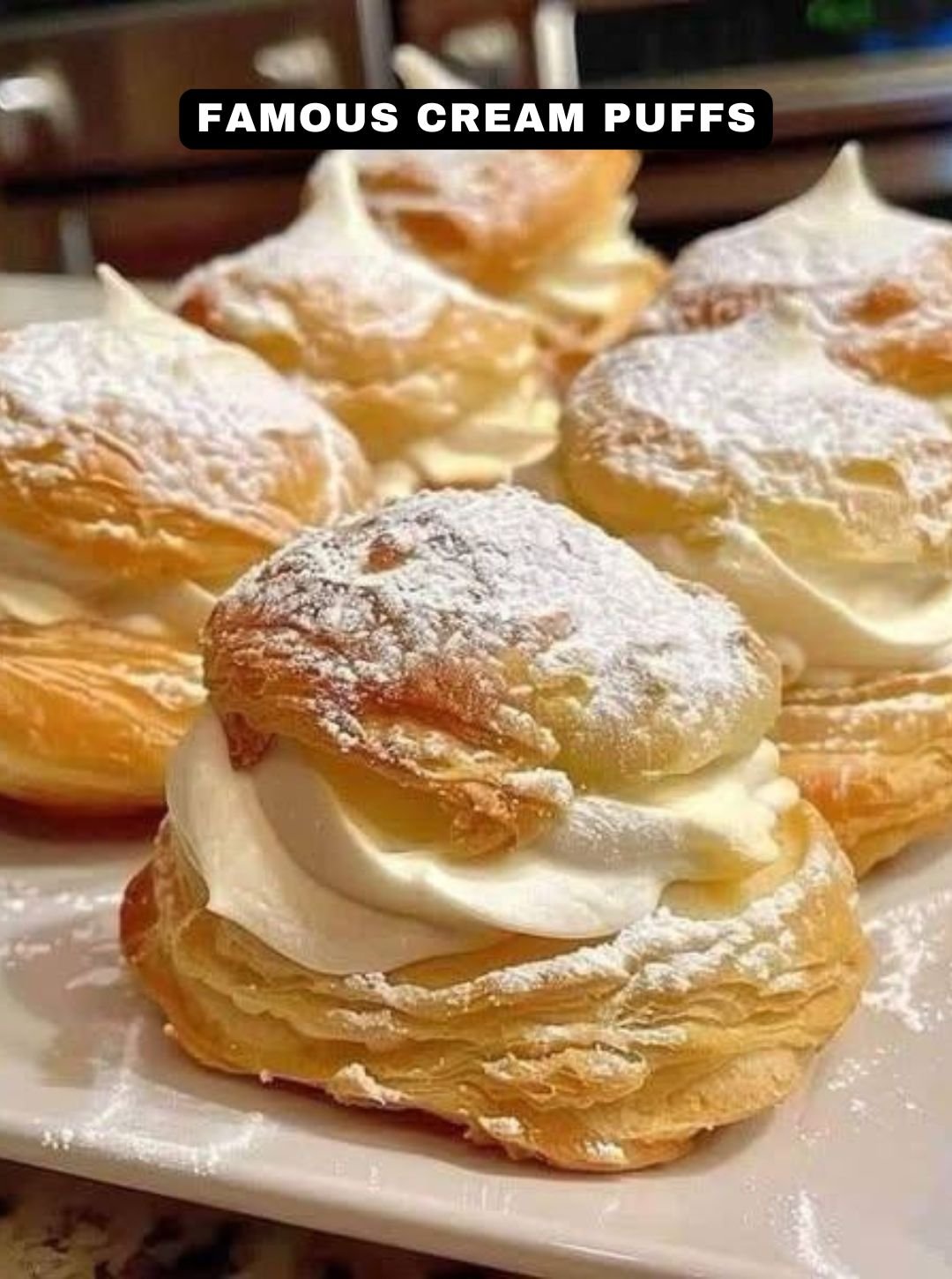Famous Cream Puffs – light, airy shells filled with luscious pastry cream or whipped filling. A timeless dessert that always impresses!