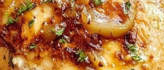 - Spoon remaining onions & sauce over chicken. Bake 20–25 min or until chicken reaches 165°F (74°C).