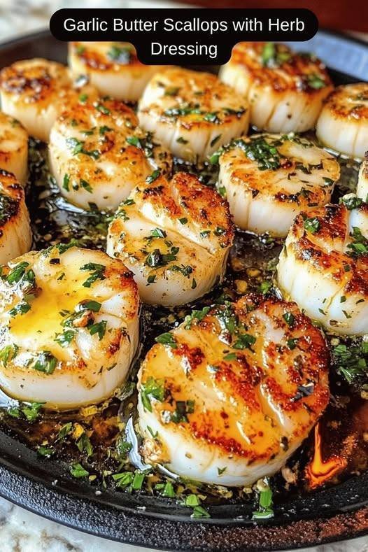 Return the scallops to the skillet and spoon the garlic herb butter over them.