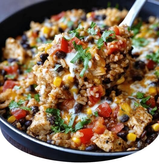 Delicious chicken, rice, beans, and cheese simmered in a single pan for a satisfying meal.