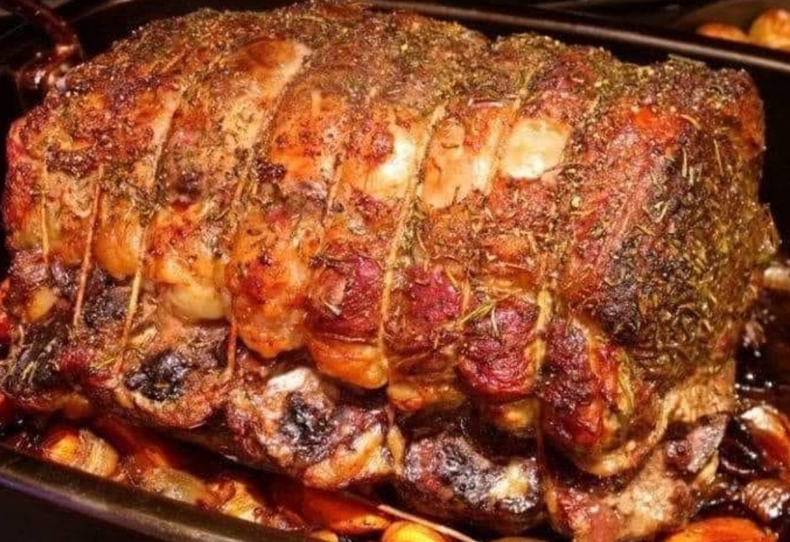 Place the onion slices in the bottom of a roasting pan. Put aside.