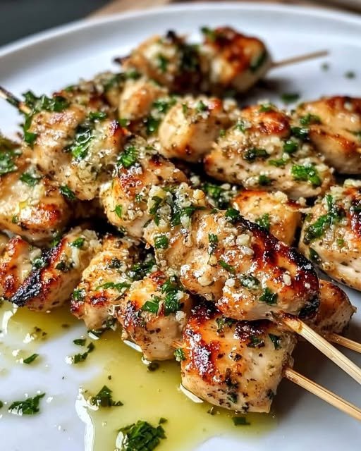 Remove the skewers from the grill and garnish with fresh chopped parsley. Serve the garlic Parmesan chicken skewers with your favorite sides or dipping sauces.
