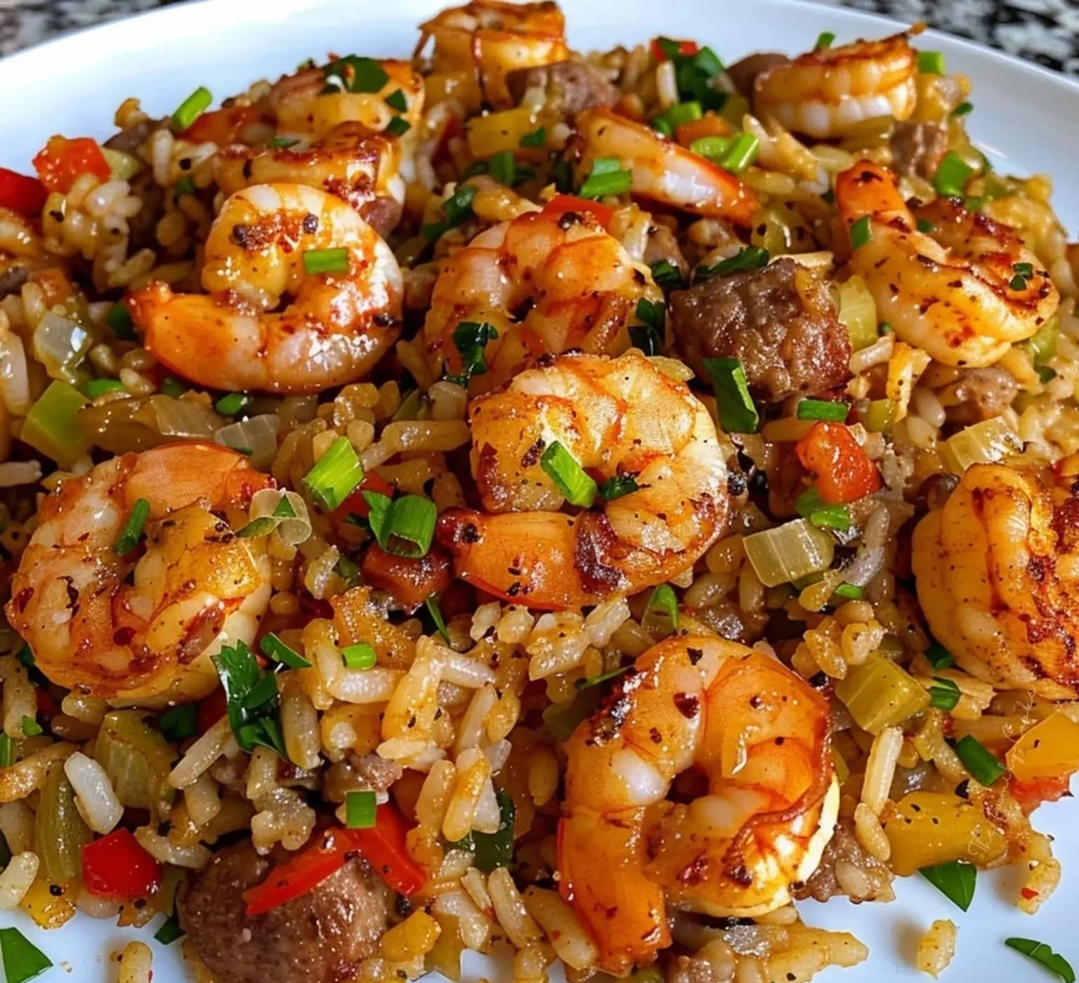 A hearty, flavor-packed jambalaya-style rice dish bursting with seasoned meats and tender shrimp.