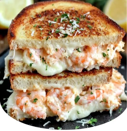 Spread softened butter on the outside of each slice of bread. Sprinkle with Parmesan cheese and lightly press down to ensure it sticks. Flip two slices, butter side down, and top with half of the shrimp and cheese mixture. Cover with a second slice, butter side up.