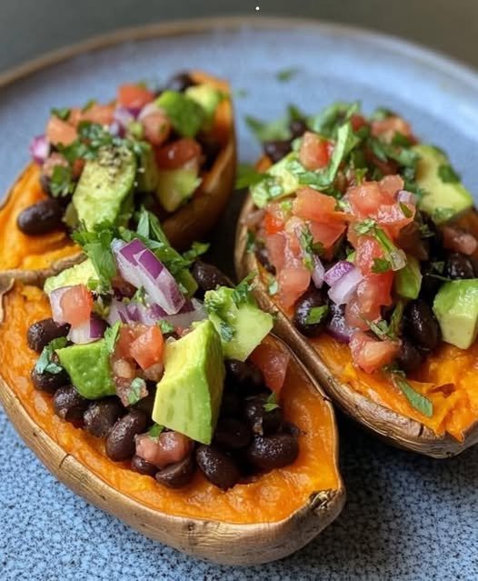 Stuffed Sweet Potatoes with Black Beans & Avocado