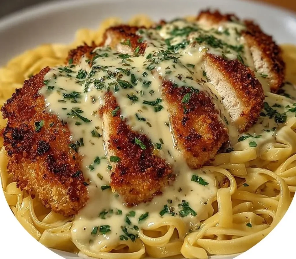 🍗 Crispy Chicken Fettuccine Alfredo – Creamy, Crunchy & Absolutely Crave-Worthy