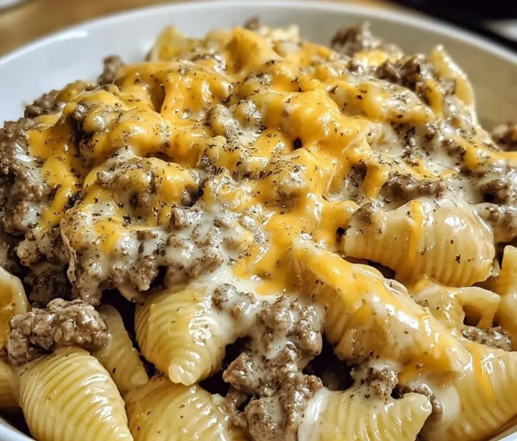 🧀 Easy Crockpot Cheesy Ranch Beef Pasta Shells – Creamy, Savory & Effortless
