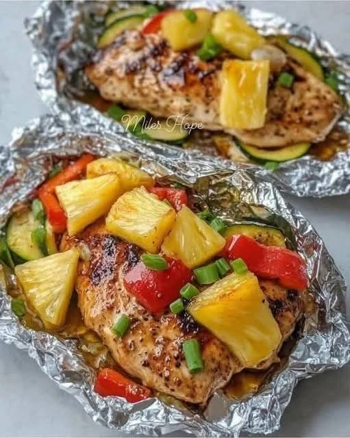 Teriyaki Chicken and Pineapple Foil Packets ,,