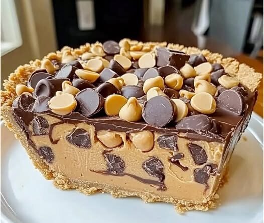 7.2. Slice and enjoy your indulgent Peanut Butter Cup Pie creation!